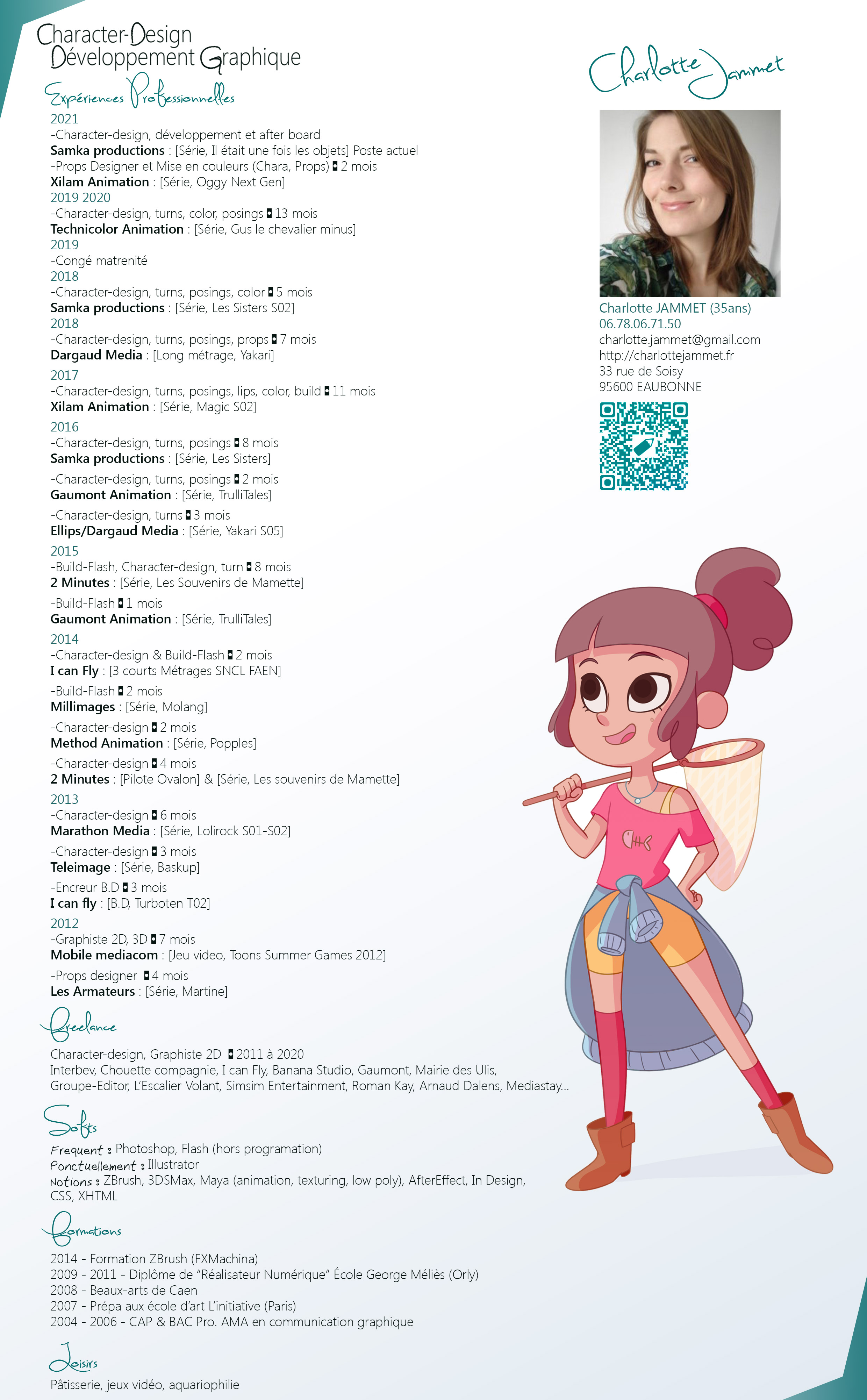 Diplômée en Graphisme et en cinéma d'animation,